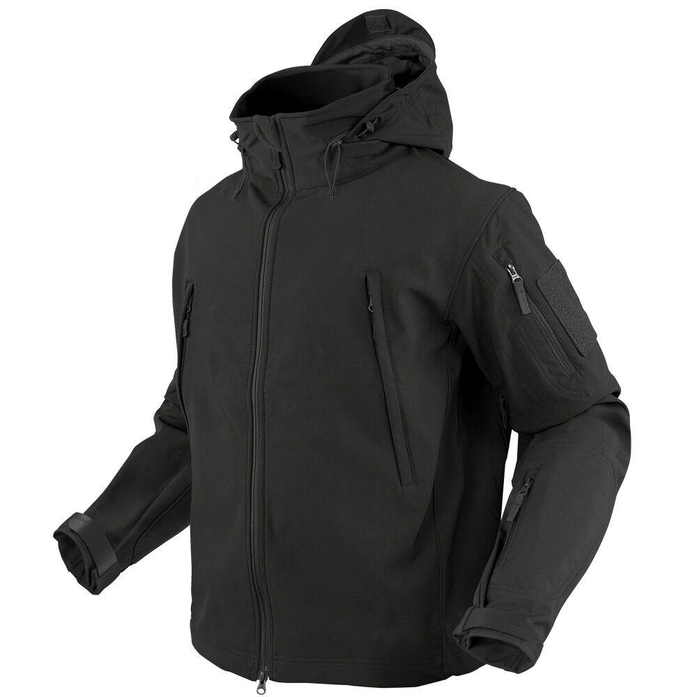 Ideal for cool climates, the Condor Summit Soft Shell Jacket combines comfort with high tactical utility. This jacket is made with moisture-wicking fabric that retains body heat to keep you warm and is treated with a water-resistant DuPont Teflon coating to keep you dry at all times. It also features underarm zippers for ventilation to help prevent overheating and a stowable hood for additional protection from the elements when the need arises. The multi-pocket design includes two shoulder pockets, a forearm pocket and two internal pockets for covert storage. Complete with a full-front YKK zipper with an easy-grip, double zipper pull, this jacket is as versatile as it is comfortable.