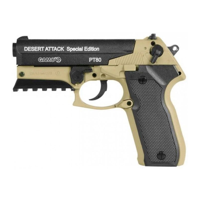 The Gamo PT-80 is a semi-automatic CO2 pistol, coming in at just under 500 grams. With a rifled steel barrel, this pistol is capable of firing accuratelly and delivering a remarkable 8 shots under 1,5 seconds. Designed to fire as either a semi-automatic or single shot it remains a favourite of the enthusiasts and it’s ideal for plinking.