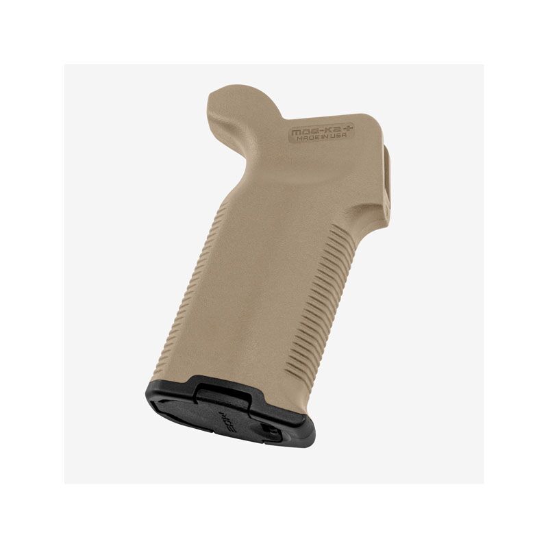 The MOE-K2+ Grip combines reinforced polymer body construction with comfortable, wrap-around rubber over molding for maximum weapon control in adverse environments. Similar in concept to the smaller MOE-K, the MOE-K2 is a drop in upgrade for AR15/M4’s that offers a more vertical grip angle, but in a full-size grip design. The steeper vertical grip angle is optimized for use on PDW (Personal Defense Weapon) configurations and improves comfort and control on short LOP rifles that bring the primary hand in closer to the shooter’s body. With the rubber over molding for positive weapon control, compatibility with optional Storage Cores for gear stowage, and a unique backstrap design for proper trigger finger placement, the K2+ brings modern styling, ergonomics, and comfort to the AR platform. All mounting hardware and a basic grip cap included.
