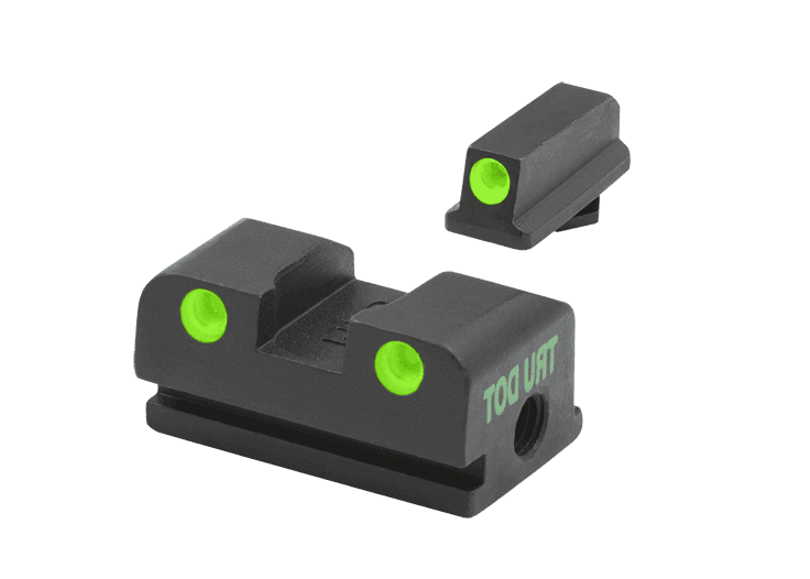 The ML18801 is a fixed set for use on the Walther P-99 9mm and .40 Compact Pistols and .45 Full Size Pistols. MEPROLIGHT sights, like our other self-illuminated products & devices take maximum advantage of tritium light sources – the fail-safe, maintenance-free light sources that don’t require any external source of energy and provides up to 15 years of usable light under all weather conditions. MEPROLIGHT continues to offer the strongest guarantee in the industry for the usable light of our TRU-DOT sights.