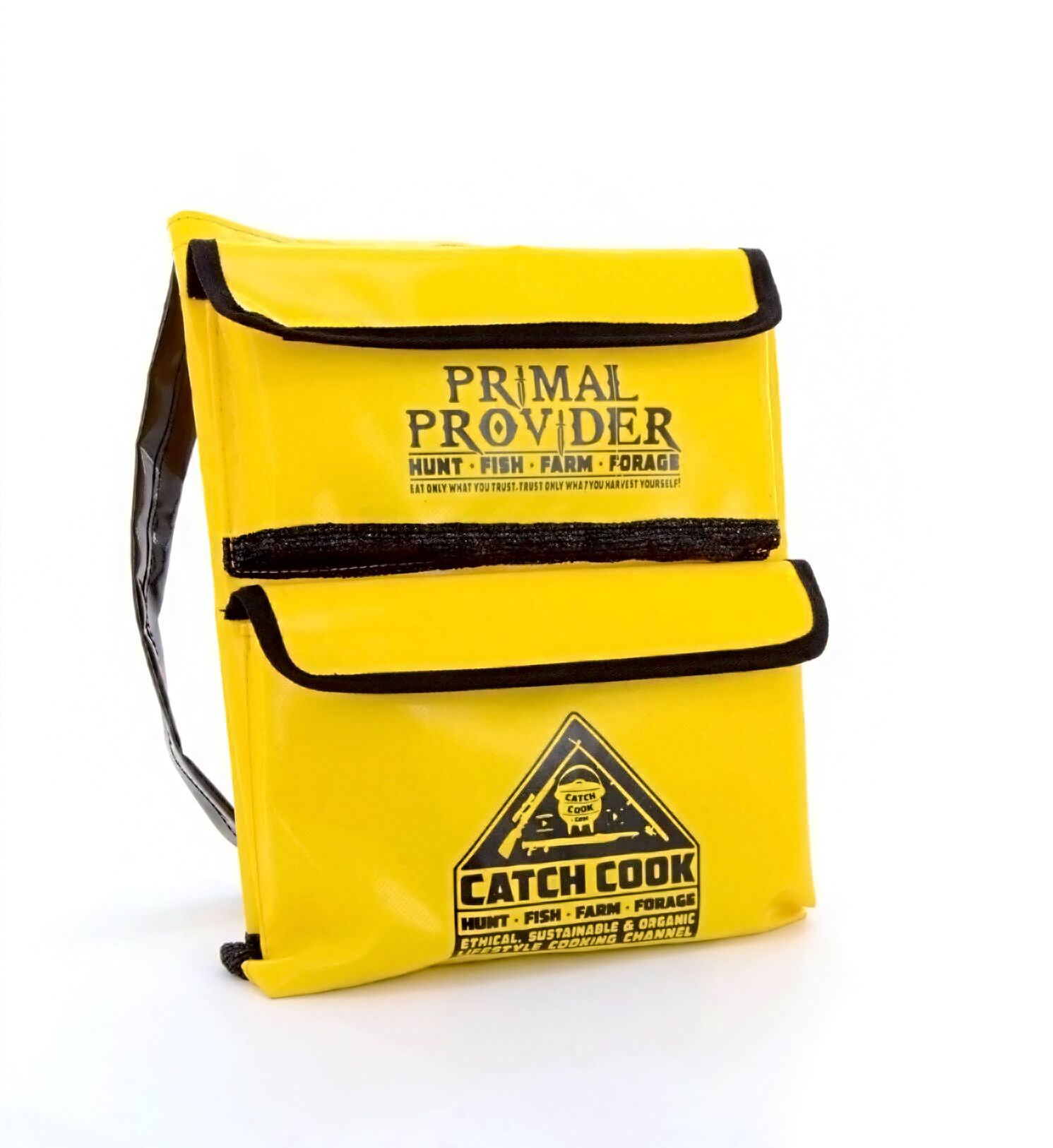 PVC Sling Bag with 2 Pouches and mesh bottoms on both pouches to allow drainage of the water.
