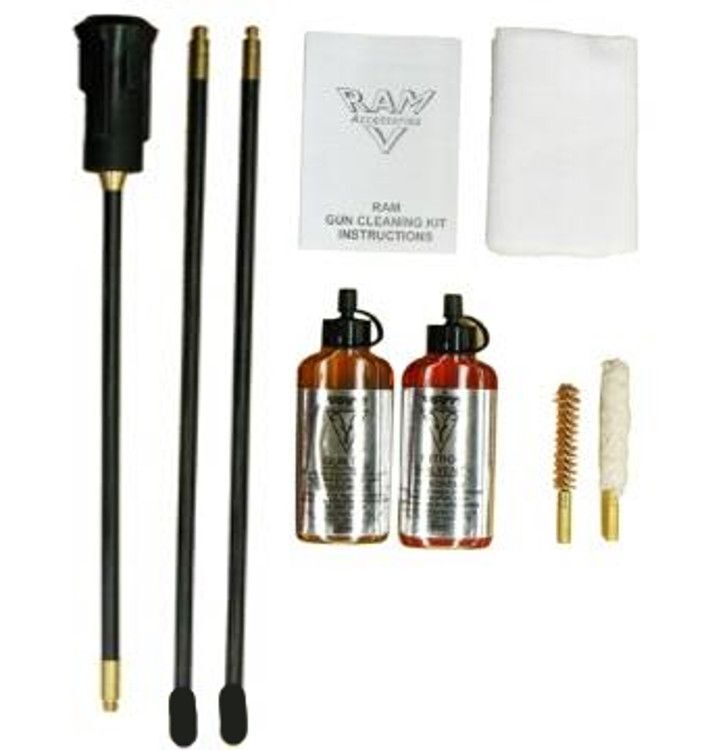 The Ram 16ga 3 Piece Shotgun Cleaning Kit is ideal to clean and maintain your firearm.. It offers an all in one shotgun cleaning kit. It includes 16ga bore brush, cleaning mop, ring handle cleaning rod, Nitro Solvent, Gun Oil and swatches.